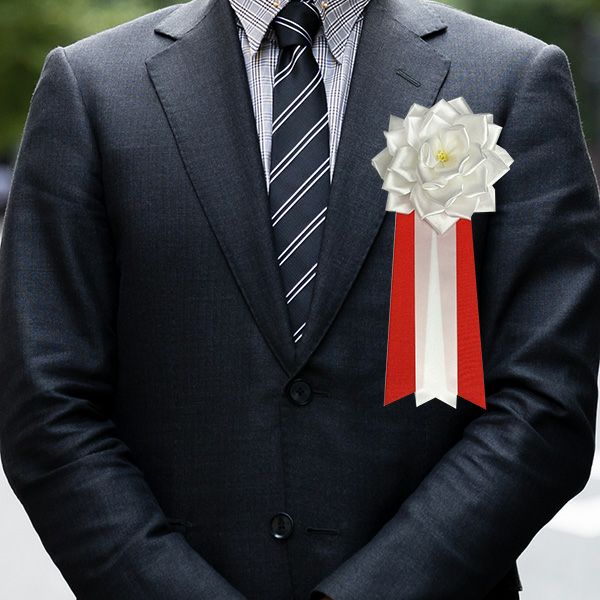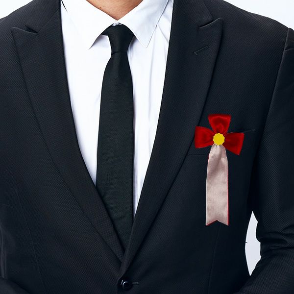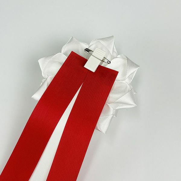リボンバラとも呼ばれるリボン徽章は、主に来賓側が赤色、主催側が白色を身に着けます。小・中・大・特大の4種類をご準備しておりますので、用途に合わせてご利用いただけます。大きさに決まりはありませんが、一般的な会社の式典などでは中~大をお選びいただくことが多いです。
