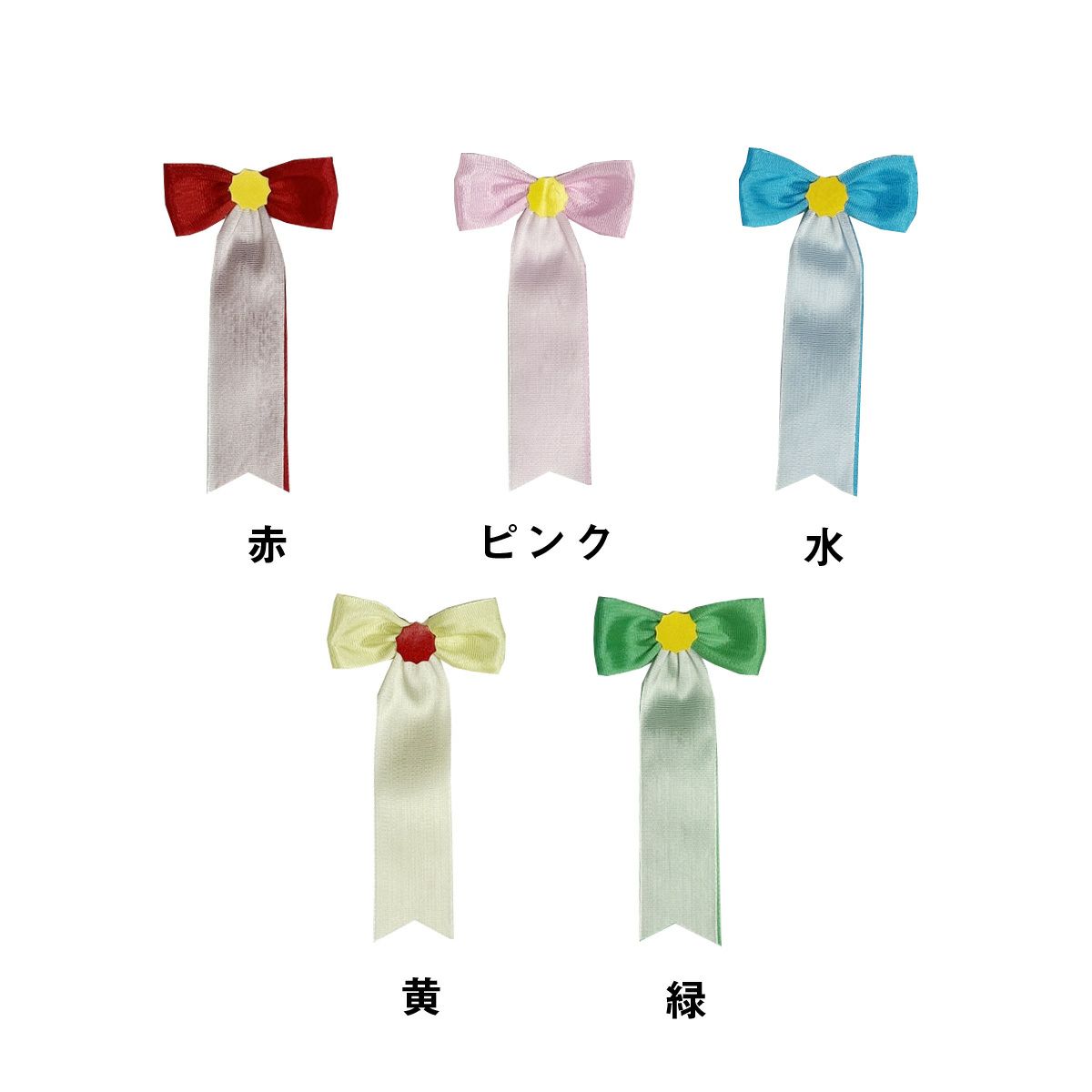 リボンバラ以外にも、蝶結びや大五方、立ヒナなど入学式や卒業式、式典時にご利用いただけるリボンを取り揃えております。表彰式や式典でクラス・所属別、役職別に区別したいときなどにもご利用いただけます。