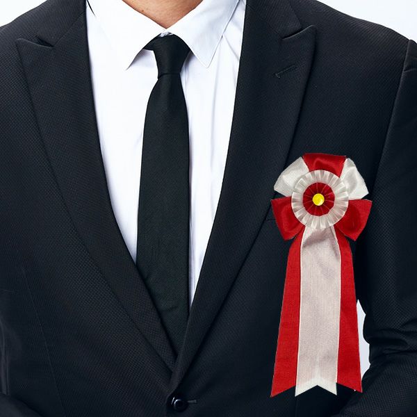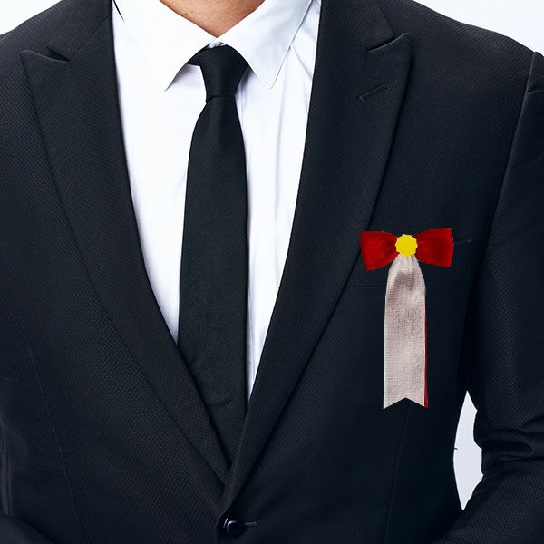 リボンバラとも呼ばれるリボン徽章は、主に来賓側が赤色、主催側が白色を身に着けます。小・中・大・特大の4種類をご準備しておりますので、用途に合わせてご利用いただけます。大きさに決まりはありませんが、一般的な会社の式典などでは中~大をお選びいただくことが多いです。