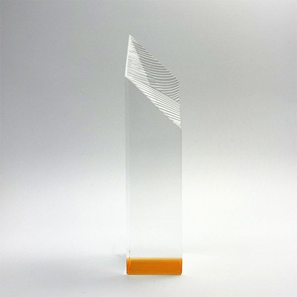 表彰の本場・アメリカから輸入するユニークな形状のアクリルトロフィー。セミオーダーメイド商品で、文字のレーザー彫刻加工は当店で行います。精密なレーザー彫刻で細かいオリジナルデザインや企業ロゴマーク、イベントロゴや名前の彫刻も可能。アクリル製のトロフィーはガラス製よりも軽くて割れにくく安価なため、当店の人気ナンバーワン商品です。