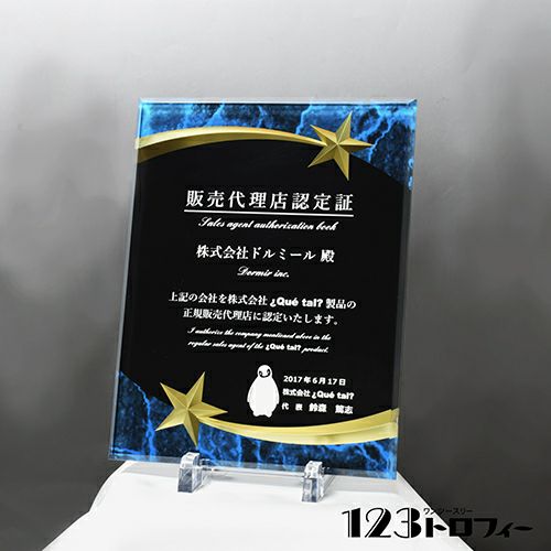 (サムズアップ)や星型、斜めのカットが美しい商品や楯状の商品、複雑な模様が施された商品や一部にゴールドやブルーのカラーを取り入れた商品など、デザイン性が高いところが輸入トロフィーの魅力です。種類豊富な取扱商品の中からイメージに合った商品をお選びいただけます。