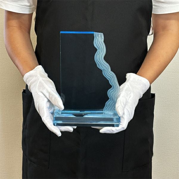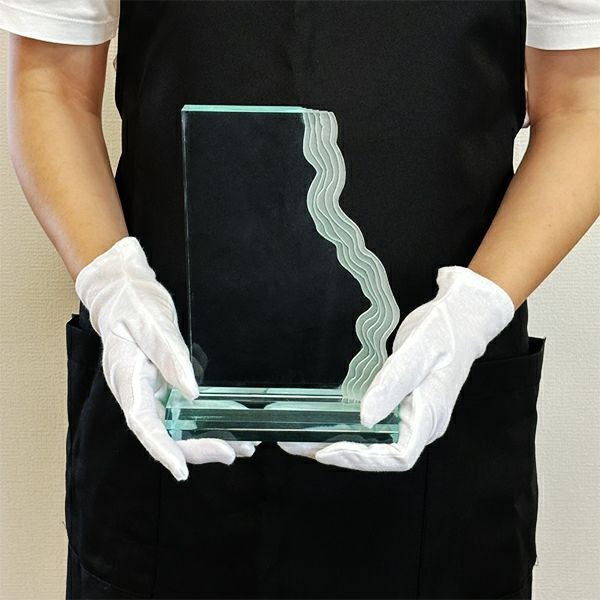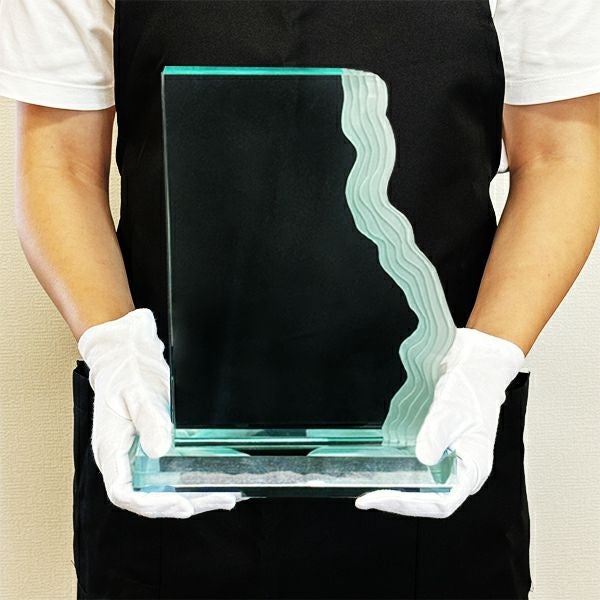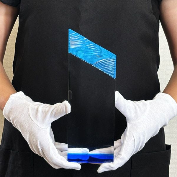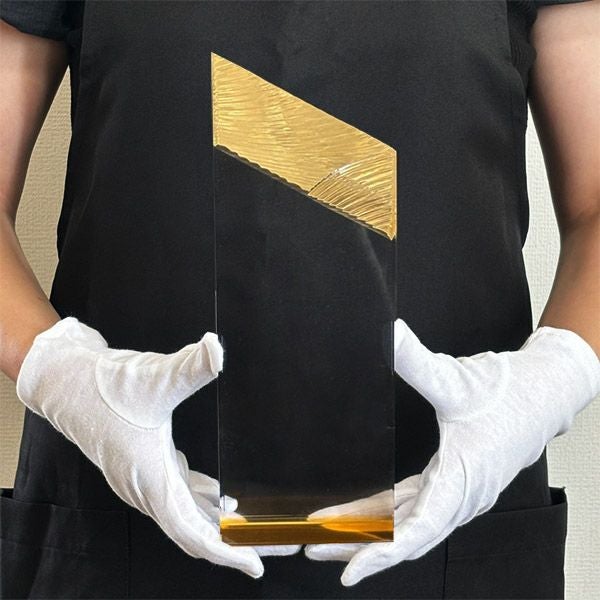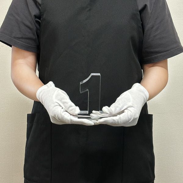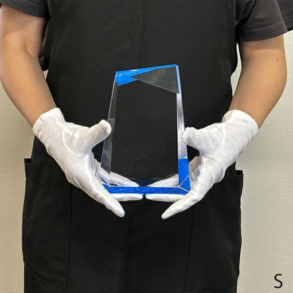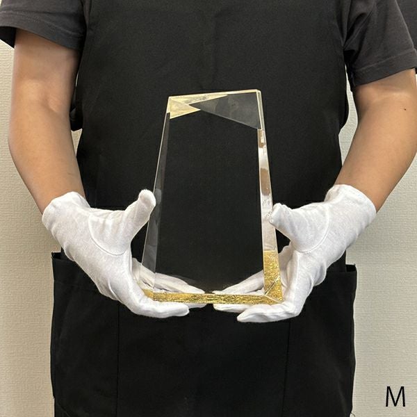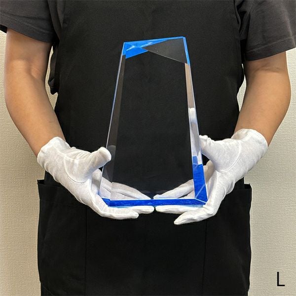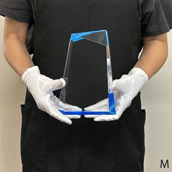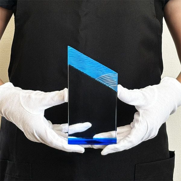 同じ透明なトロフィーとしてクリスタルトロフィー(ガラス製)も取り扱っておりますが、どうしても高価な商品が多いです。しかし、輸入トロフィーはアクリル製のため、比較的安価でお買い求めいただけます。とはいえ、その品質は確かで多くのお客様から喜びの声をいただいており、専用の貼箱に梱包してお届けさせていただいております(白手袋付き)。軽くて丈夫なハイクオリティな透明トロフィーを、ぜひ一度ご利用くださいませ。