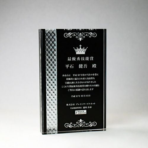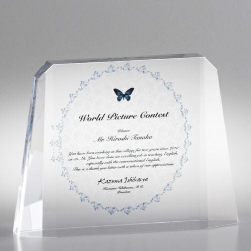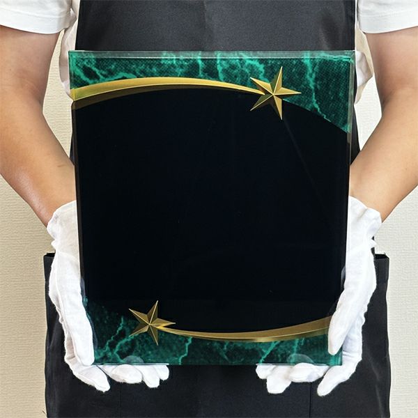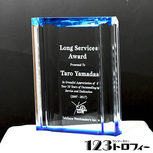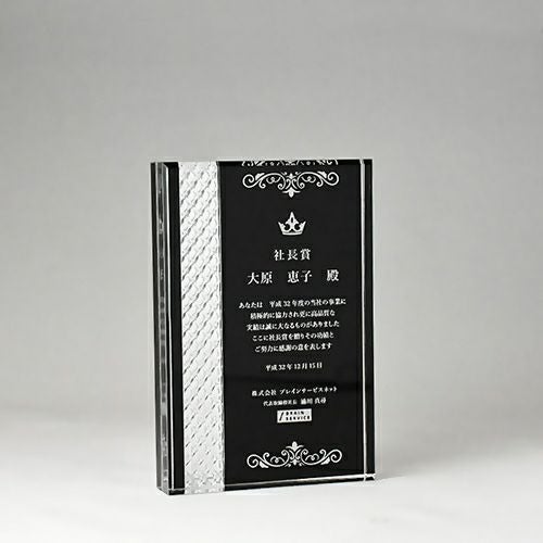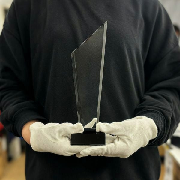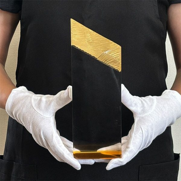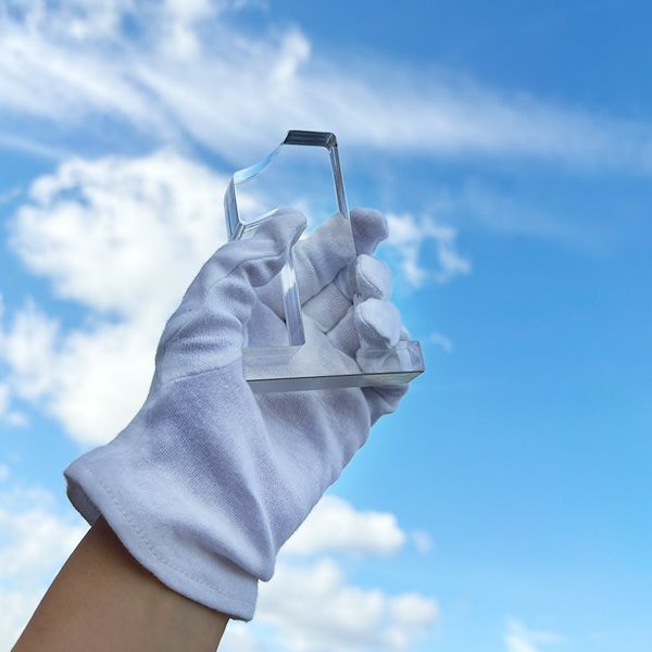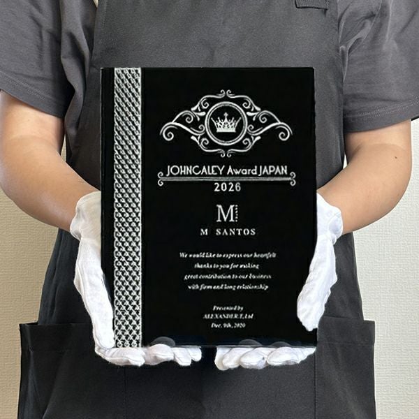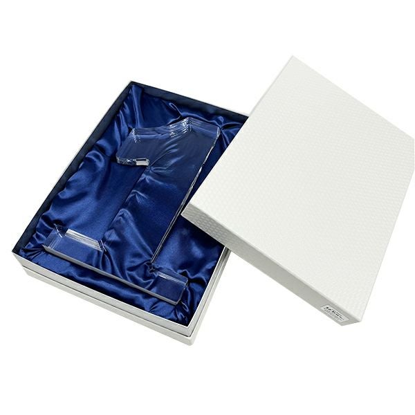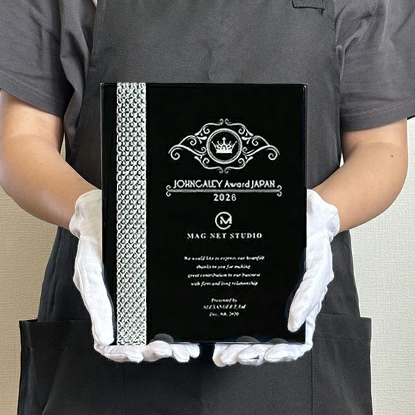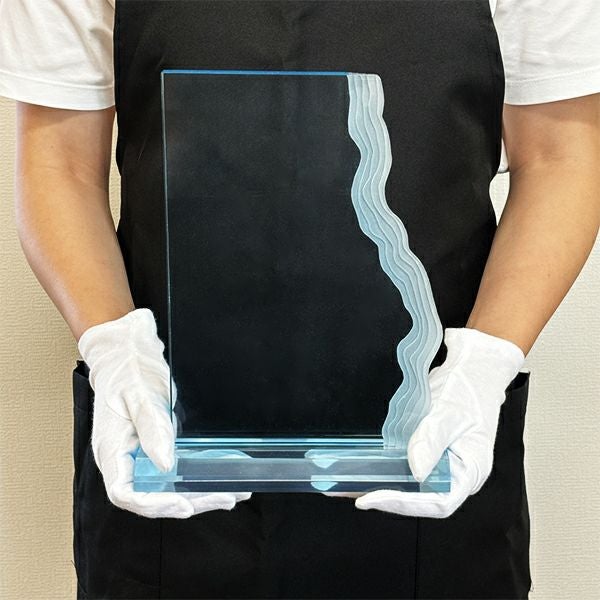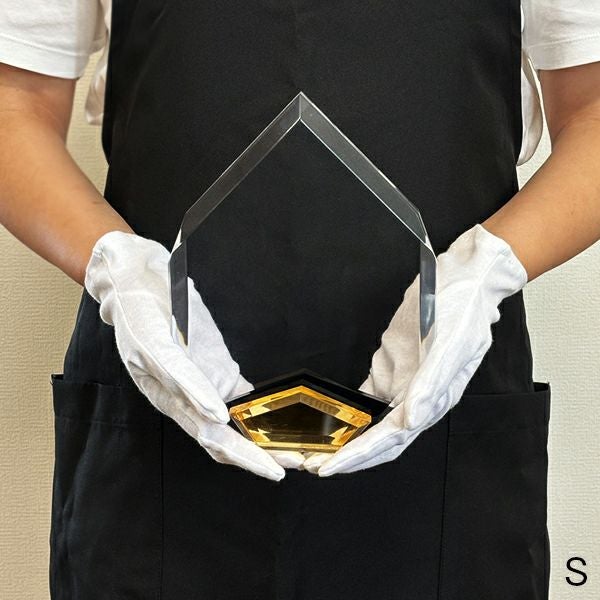 同じ透明なトロフィーとしてクリスタルトロフィー(ガラス製)も取り扱っておりますが、どうしても高価な商品が多いです。しかし、輸入トロフィーはアクリル製のため、比較的安価でお買い求めいただけます。とはいえ、その品質は確かで多くのお客様から喜びの声をいただいており、専用の貼箱に梱包してお届けさせていただいております(白手袋付き)。軽くて丈夫なハイクオリティな透明トロフィーを、ぜひ一度ご利用くださいませ。