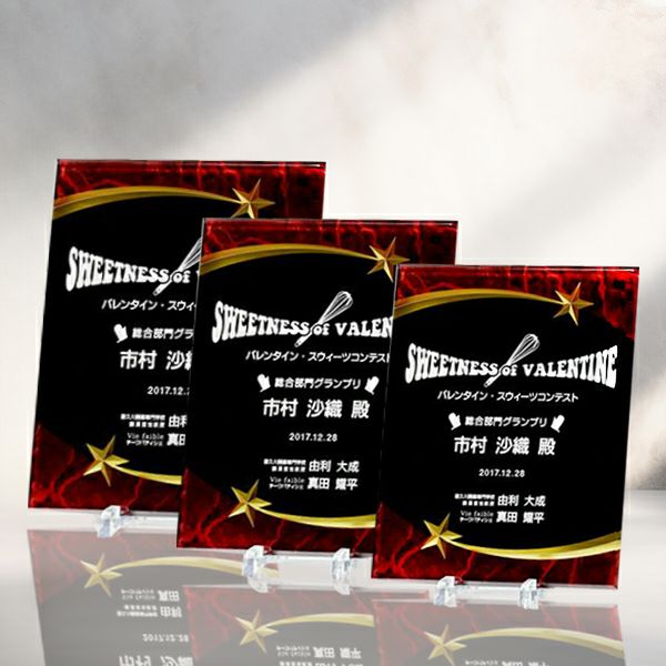 アメリカ製ならではのスターデザインが特徴的なアクリル表彰楯(赤) アクリルプラーク(表彰楯) オリジナルカーブスター レッド S~L
