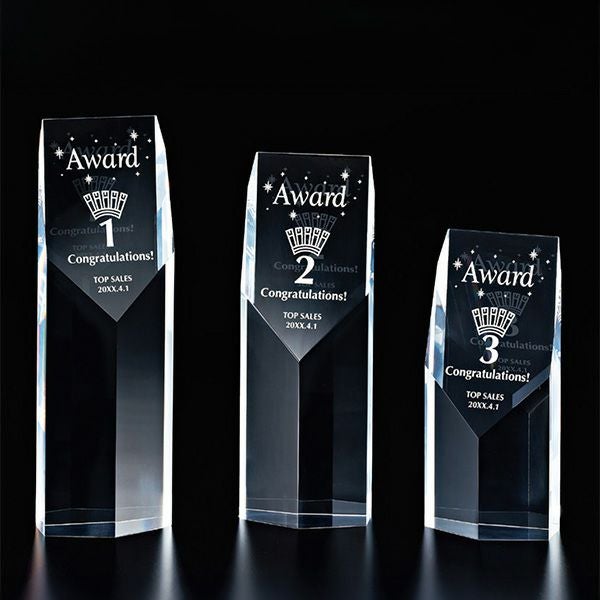 • 光の反射が美しい透明トロフィー