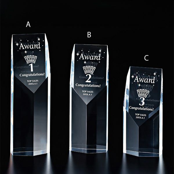 光の反射が美しい透明トロフィー