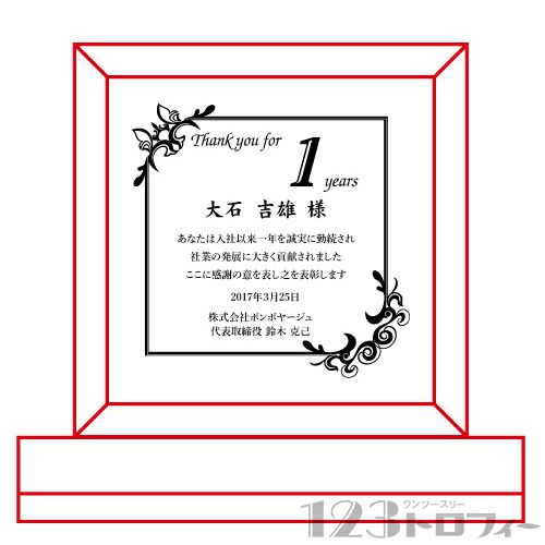 ほかのトロフィーや表彰楯同様、デザイン料無料でご希望の記念品を制作できます。彫刻面が広く多くの文字を彫刻できるほか、イラストやロゴなども再現可能です。アクリルに裏側からレーザー彫刻を施すため彫刻した部分が白色で表現され、洗練されたイメージの商品を制作できます。また、「デザインは苦手…」という方も、デザイン作成は安心して当店のデザイナーにお任せください。