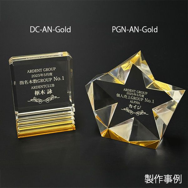 デザイン料無料&デザインデータ保管でリピート購入もしやすく、社内表彰や名入れギフトにも大人気! 中でも人気の商品はペンタゴンスターアワード。手のひらになじむサイズ感と光を反射して輝く姿に加え、飾りやすさも人気の理由です。透明度の高いアクリルトロフィーは、清潔感と高級感が魅力でどんな表彰シーンにもおすすめできます。「もらってうれしい、飾れば映える」近年の表彰用品・記念品の定番となっています。