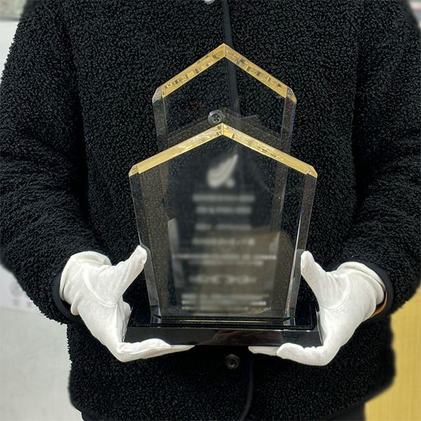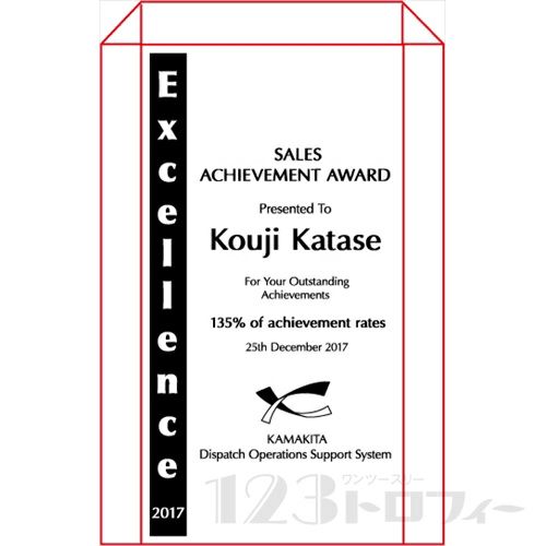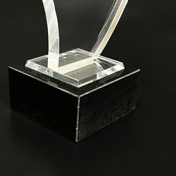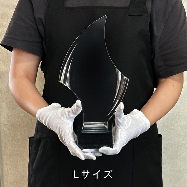 同じ透明なトロフィーとしてクリスタルトロフィー(ガラス製)も取り扱っておりますが、どうしても高価な商品が多いです。しかし、輸入トロフィーはアクリル製のため、比較的安価でお買い求めいただけます。とはいえ、その品質は確かで多くのお客様から喜びの声をいただいており、専用の貼箱に梱包してお届けさせていただいております(白手袋付き)。軽くて丈夫なハイクオリティな透明トロフィーを、ぜひ一度ご利用くださいませ。