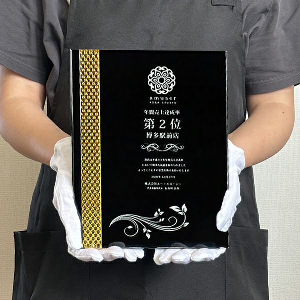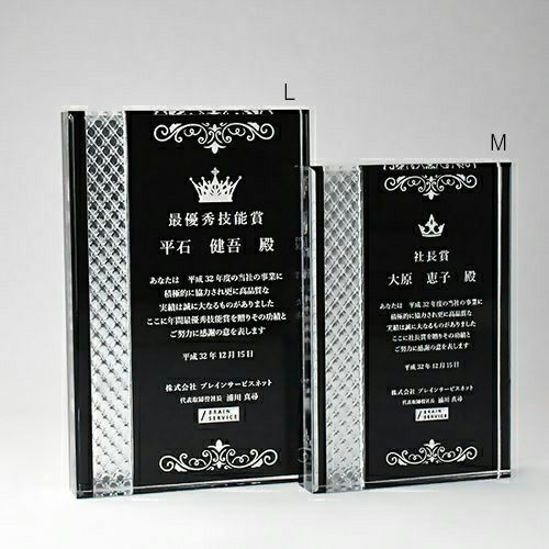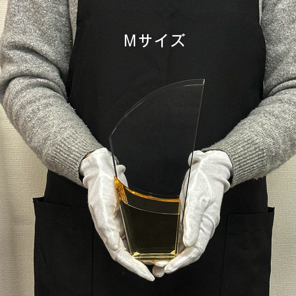 同じ透明なトロフィーとしてクリスタルトロフィー(ガラス製)も取り扱っておりますが、どうしても高価な商品が多いです。しかし、輸入トロフィーはアクリル製のため、比較的安価でお買い求めいただけます。とはいえ、その品質は確かで多くのお客様から喜びの声をいただいており、専用の貼箱に梱包してお届けさせていただいております(白手袋付き)。軽くて丈夫なハイクオリティな透明トロフィーを、ぜひ一度ご利用くださいませ。