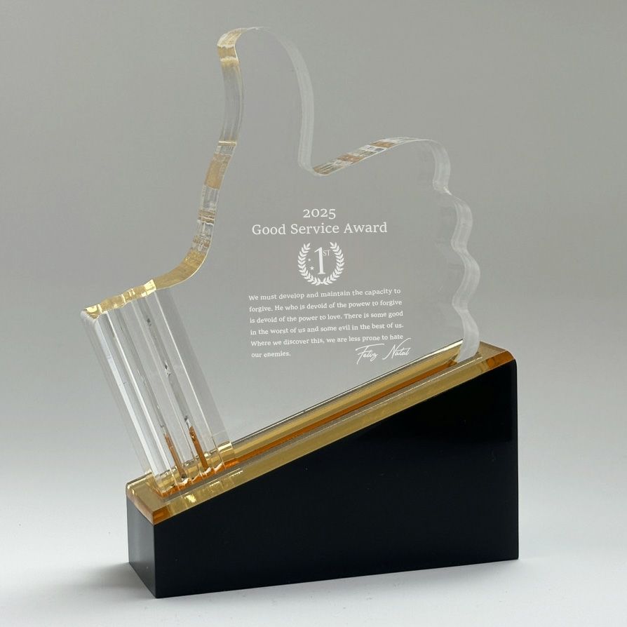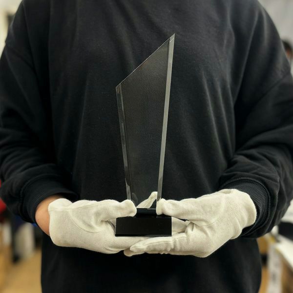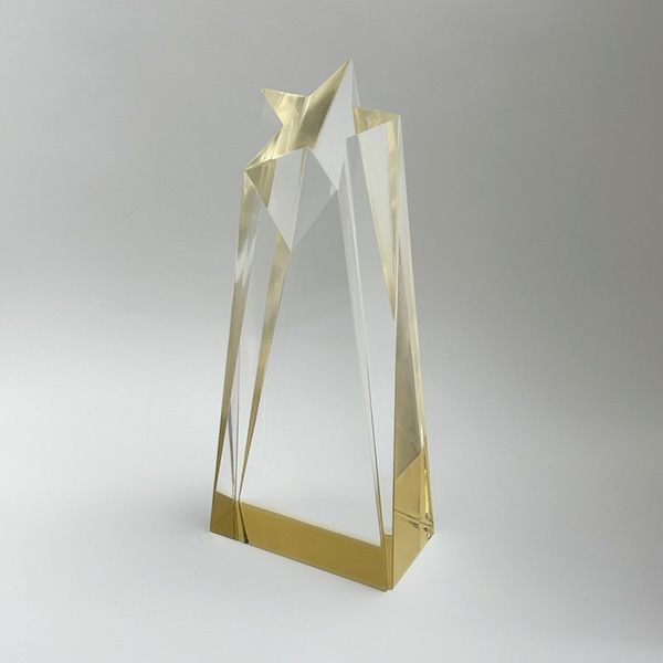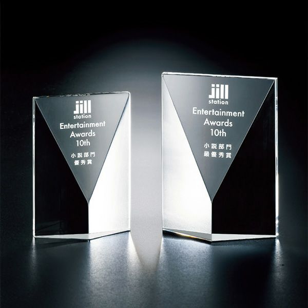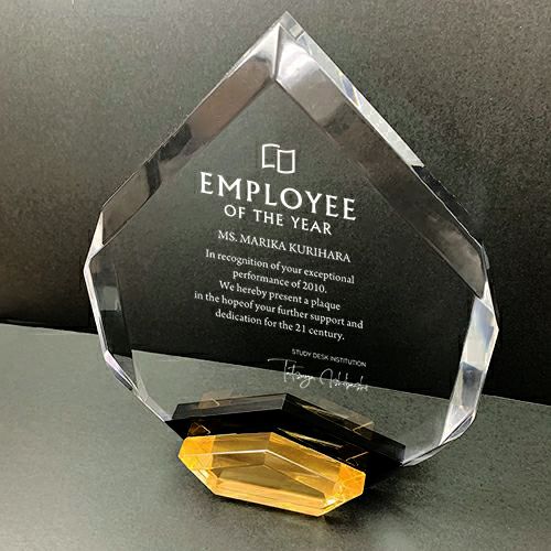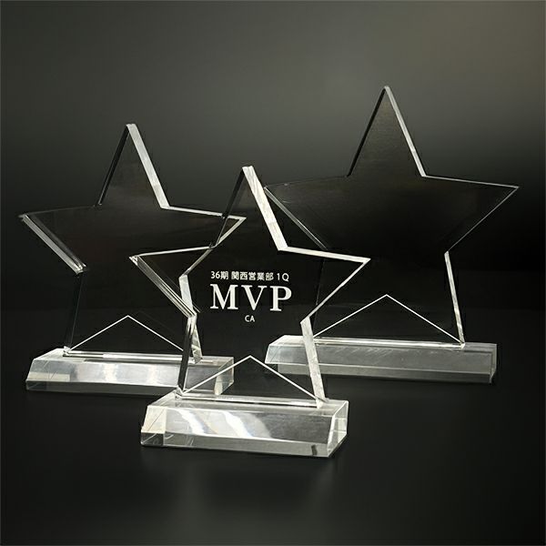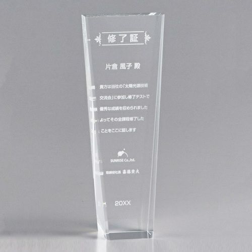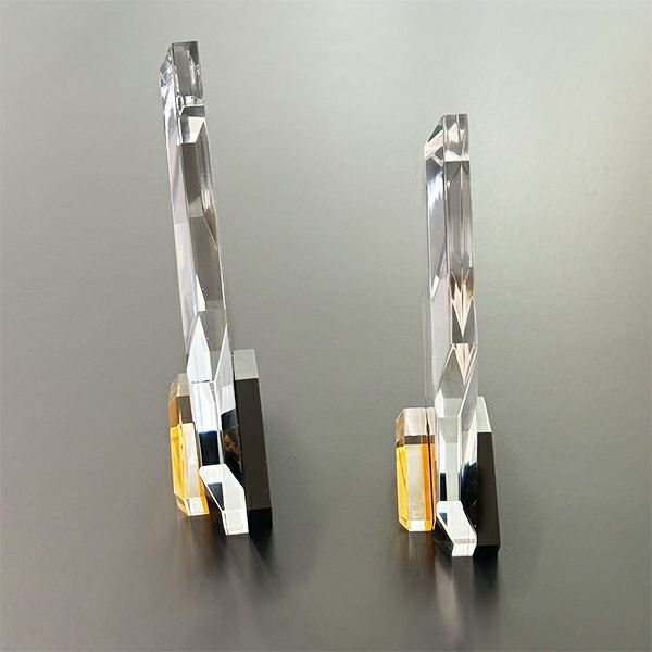 光の反射が美しい透明トロフィー