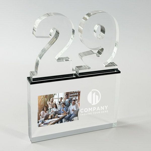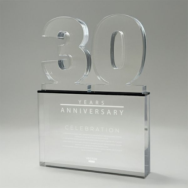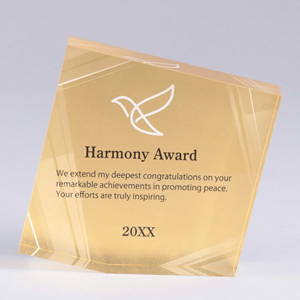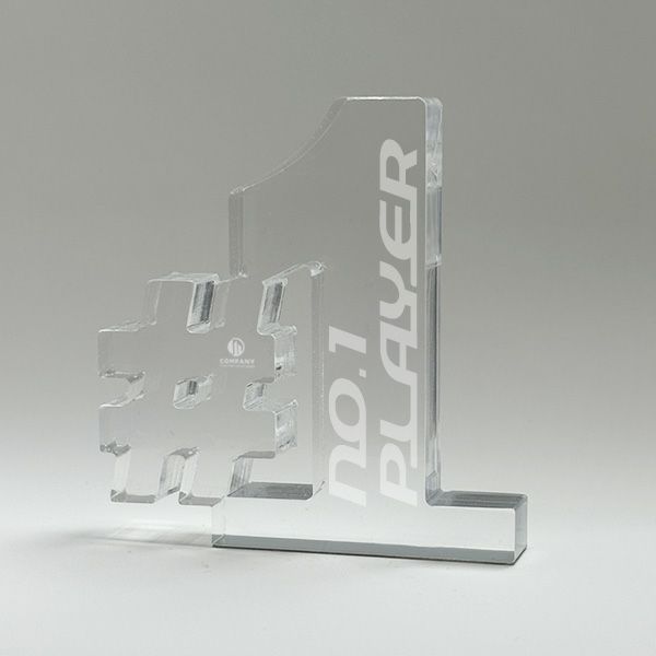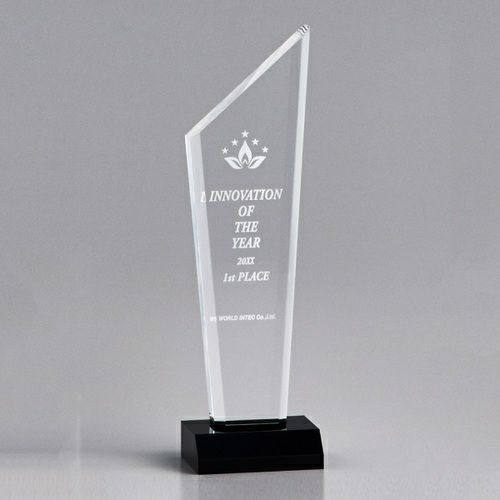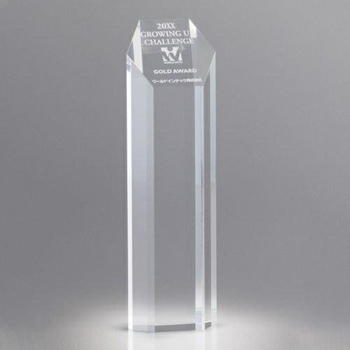 表彰の本場・アメリカから輸入するユニークな形状のアクリルトロフィー。セミオーダーメイド商品で、文字のレーザー彫刻加工は当店で行います。精密なレーザー彫刻で細かいオリジナルデザインや企業ロゴマーク、イベントロゴや名前の彫刻も可能。アクリル製のトロフィーはガラス製よりも軽くて割れにくく安価なため、当店の人気ナンバーワン商品です。