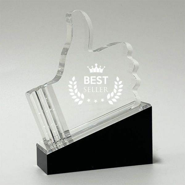 (サムズアップ)や星型、斜めのカットが美しい商品や楯状の商品、複雑な模様が施された商品や一部にゴールドやブルーのカラーを取り入れた商品など、デザイン性が高いところが輸入トロフィーの魅力です。種類豊富な取扱商品の中からイメージに合った商品をお選びいただけます。