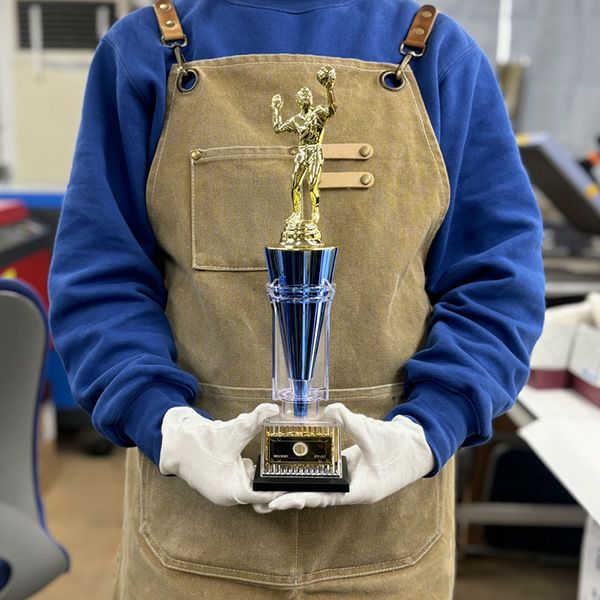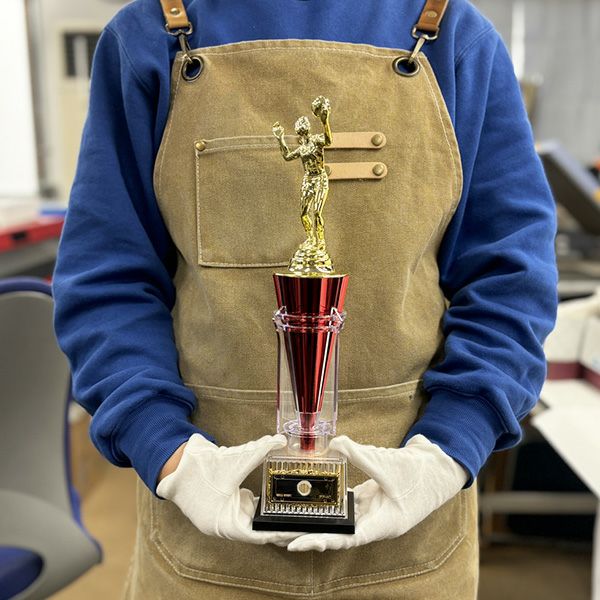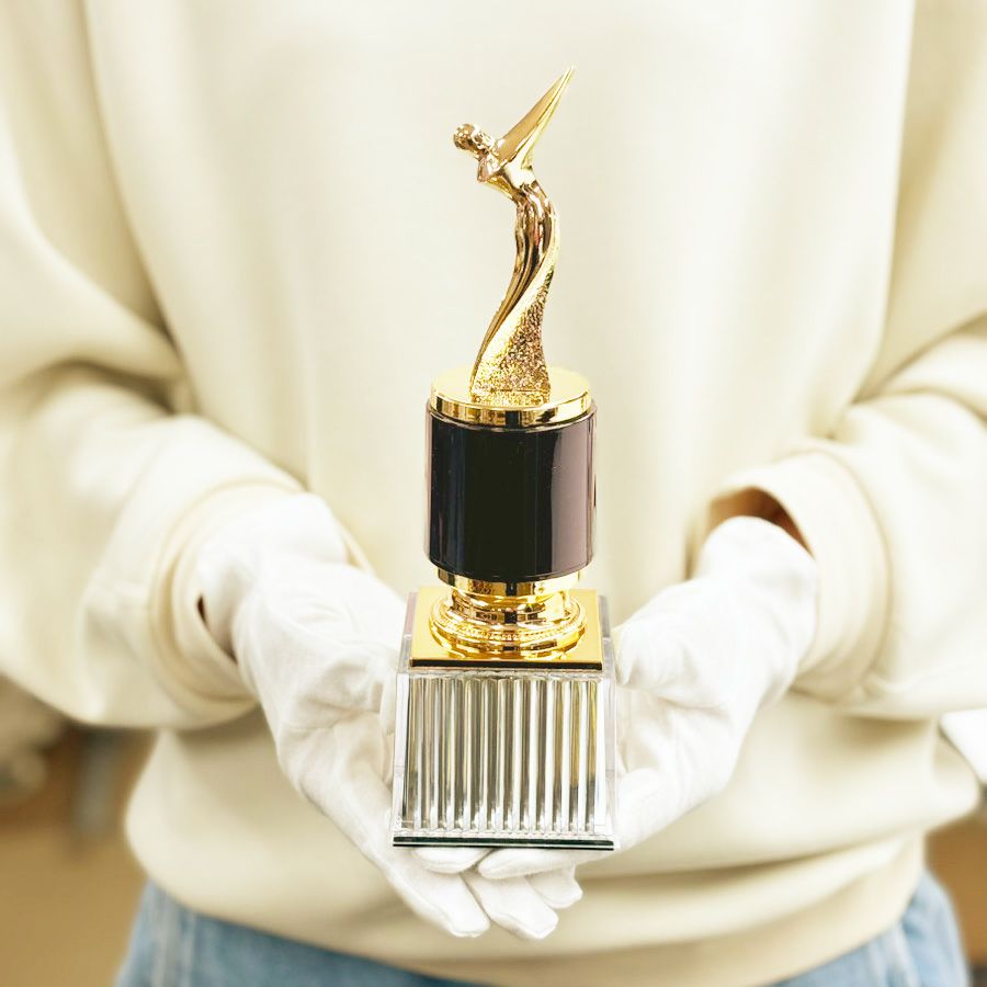 フォルムの自由度が高く、女神をはじめ動物や聖火、スポーツ競技やボール型など、さまざまなモチーフを表現したトロフィーが揃っています。一般的な「塔」のようなトロフィーではなく、さまざまな形状からお選びいただけるのが魅力です。