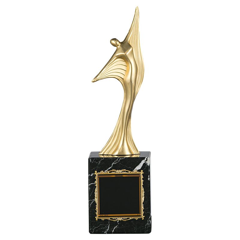 主に女神や人型をモチーフとしたスタイリッシュなデザインが特徴のブロンズトロフィー。金属製のずっしりとした重みと質感で、華やかさと落ち着いた雰囲気をあわせ持つトロフィーです。土台に天然石を使用した商品も多く、自然物だからこそ表現できる独特な表情とブロンズの組み合わせでアワードに華を添えます。
