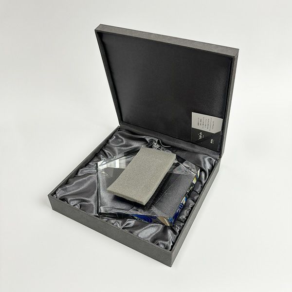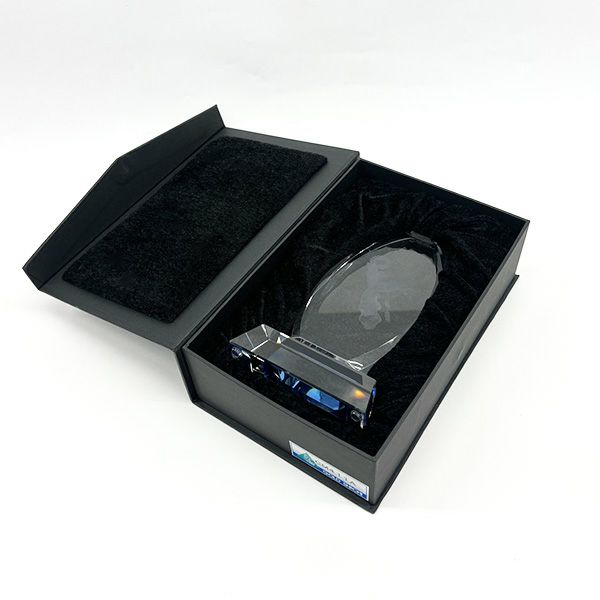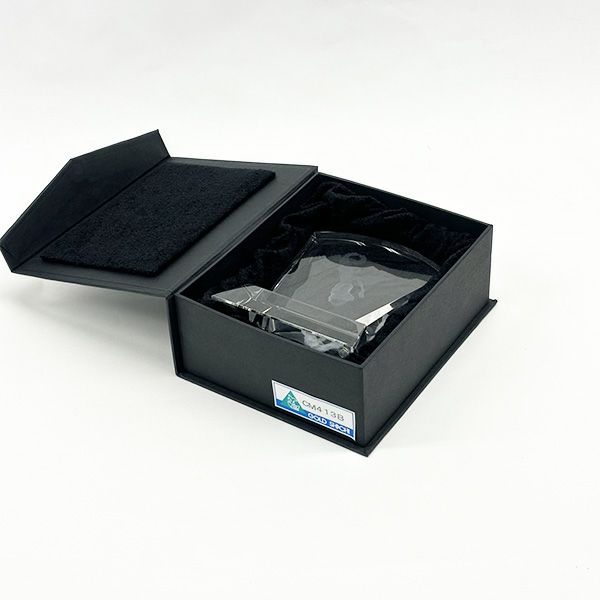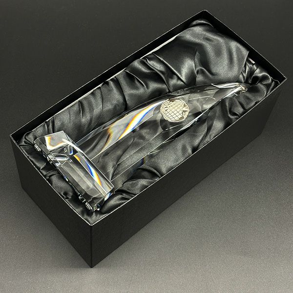 光学ガラスの際立つ透明感ときらめきがまさにクリスタルのようで、その重厚感が魅力です。手に持っても飾っても存在感があり、イベントの格式の高さを表現できます。