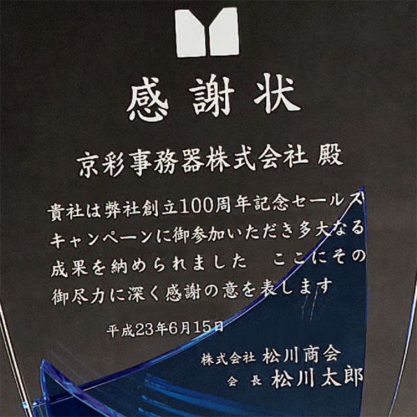 123トロフィーのクリスタルトロフィーはダイレクトプリント加工(フルカラー対応)が可能な商品を豊富にラインナップしております。セミオーダーメイドで、もらってうれしい素敵なオリジナルのトロフィーを作成してみませんか。デザイン料無料でプロのデザイナーがデザイン制作をお手伝いいたします。
