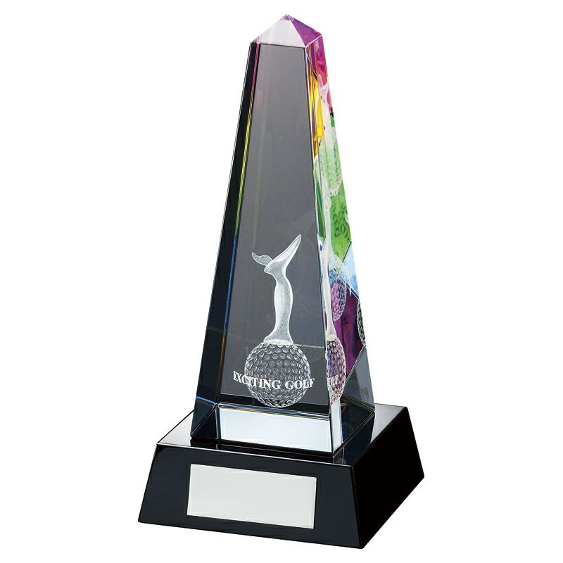 カラーダイレクトプリント加工ができるおしゃれなセミオーダーメイドクリスタルトロフィーです。トロフィーの一部にブルーやレインボーのカラー加工をあしらった商品(文字彫刻はレーザー加工)も取り揃えております。オリジナルデザインでオンリーワンのおしゃれなクリスタルトロフィー・クリスタル表彰盾を作成できます。