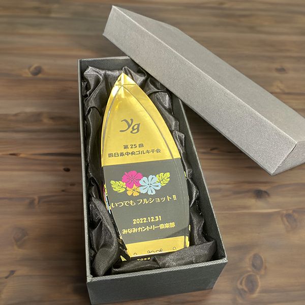 クリスタルトロフィーの原料となっているのは光学ガラスと呼ばれるもので、カメラのレンズにも使用されるほど高水準の透明度を持っていることが最大の特徴です。光を反射しキラキラと輝くことで他とは違う高級感を演出します。その洗練されたイメージから、社内表彰式やスポーツ大会の優勝トロフィー(記念品)、周年記念イベント、ゴルフコンペ、コンクールやコンテストの表彰用のトロフィーとして高い人気を誇ります。セミオーダーメイドのクリスタルトロフィーで素敵な表彰式を開催してください。
