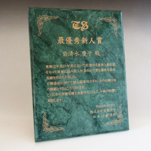 他の画像を見る 社内表彰や認定証・学会表彰に人気 MDF表彰楯・記念楯 グリーンマーブル Mサイズ【オーダーメイドデザイン作成お任せください デザイン保管】remove-item-zyxwvu カートに入れる お気に入りに登録する オリジナルデザイン対応 デザイン確認あり 1個〜注文可能 デザイン料無料 当店特別価格 ¥ 5,500 税込 5.00 (1)
