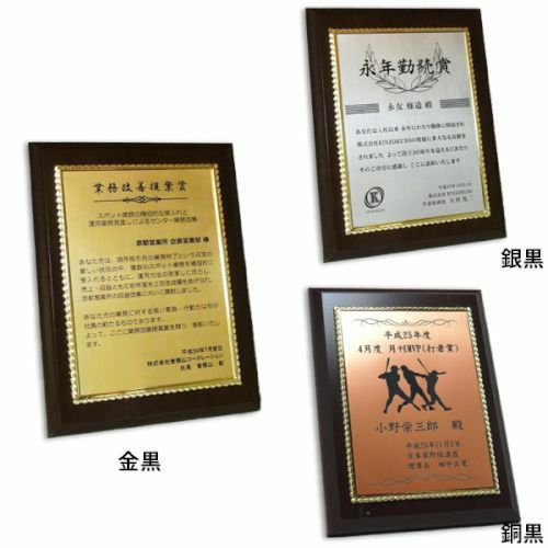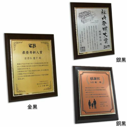 他の画像を見る 縦横対応・飾り枠付き。レーザー彫刻でデザイン表現(黒文字) MDF表彰楯・記念楯 飾枠付黒檀+金黒樹脂プレート Sサイズ【オーダーメイドデザイン作成お任せください デザイン保管】 カートに入れる お気に入りに登録する 当店特別価格 ¥ 7,130 税込 (0)