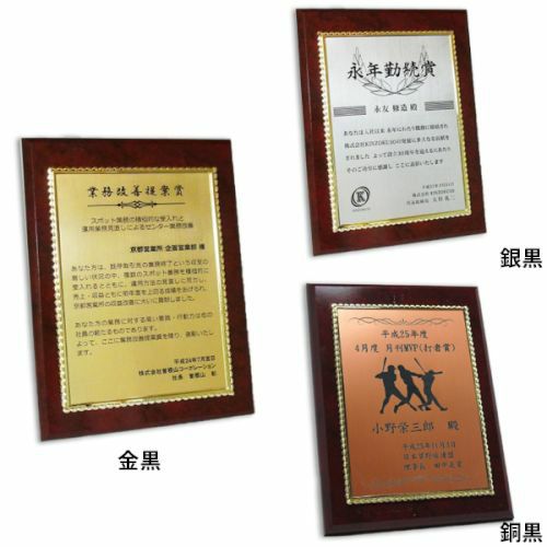 他の画像を見る 短納期対応。デザイン料無料 MDF表彰楯・記念楯 飾枠付黒檀+銅黒樹脂プレート Sサイズ【オーダーメイドデザイン作成お任せください デザイン保管】 カートに入れる お気に入りに登録する オリジナルデザイン対応 デザイン確認あり 1個〜注文可能 デザイン料無料 当店特別価格 ¥ 7,130 税込 (0)