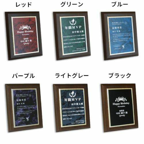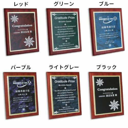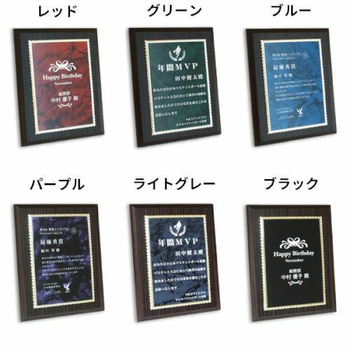 他の画像を見る 縦横対応・飾り枠付き。レーザー彫刻でデザイン表現(白文字) MDF表彰楯・記念楯 飾枠付新カリン+マーブルプレート パープル Sサイズ【オーダーメイドデザイン作成お任せください デザイン保管】 カートに入れる お気に入りに登録する オリジナルデザイン対応 デザイン確認あり 1個〜注文可能 デザイン料無料 当店特別価格 ¥ 7,130 税込 (0)