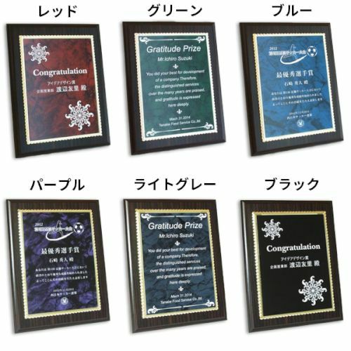 他の画像を見る 縦横対応・飾り枠付き。デザイン料込!オリジナルデザイン彫刻可能 MDF表彰楯・記念楯 飾枠付レッドマーブル+マーブルプレート グリーン Lサイズ【オーダーメイドデザイン作成お任せください デザイン保管】 カートに入れる お気に入りに登録する オリジナルデザイン対応 デザイン確認あり 1個〜注文可能 デザイン料無料 当店特別価格 ¥ 8,148 税込 (0)