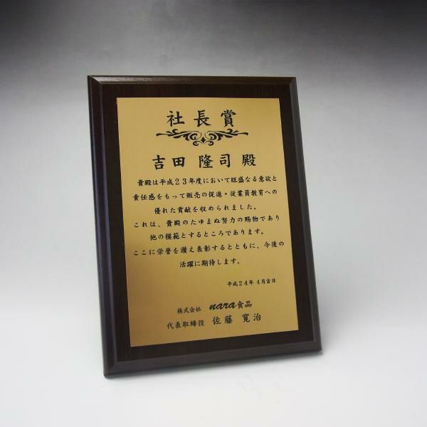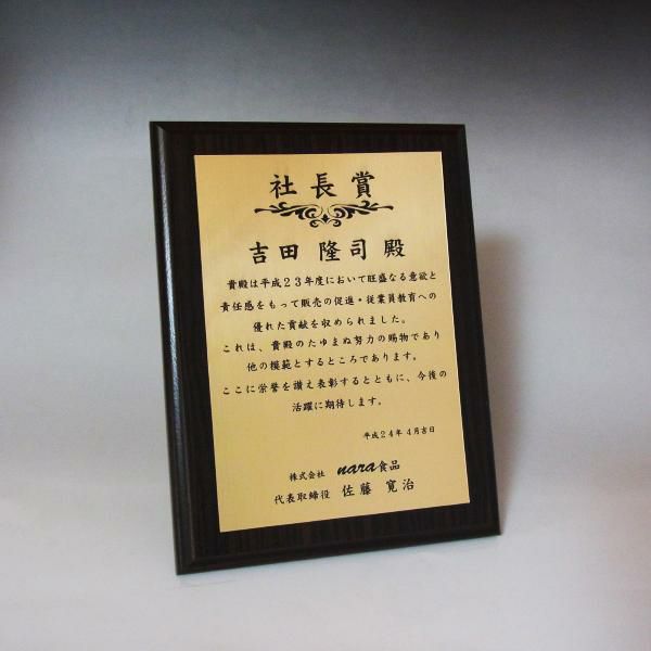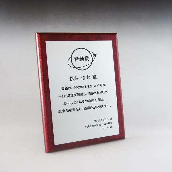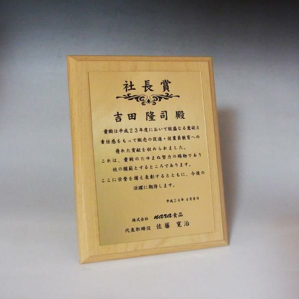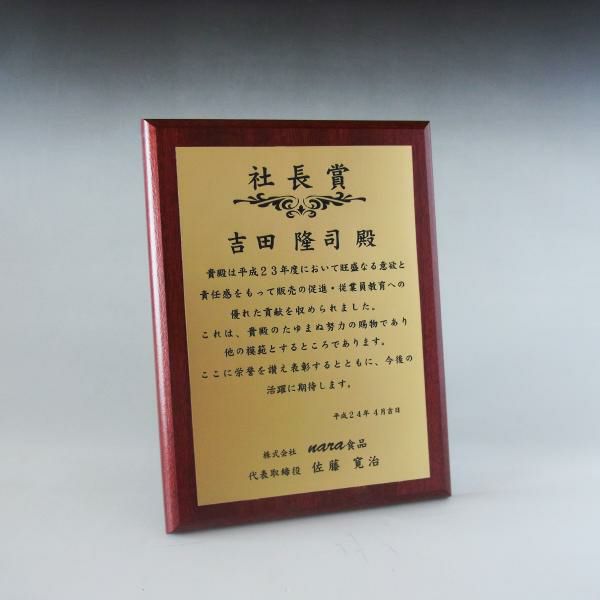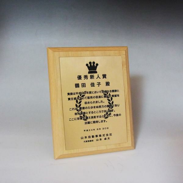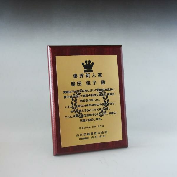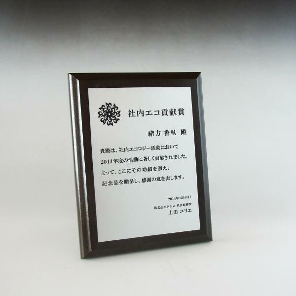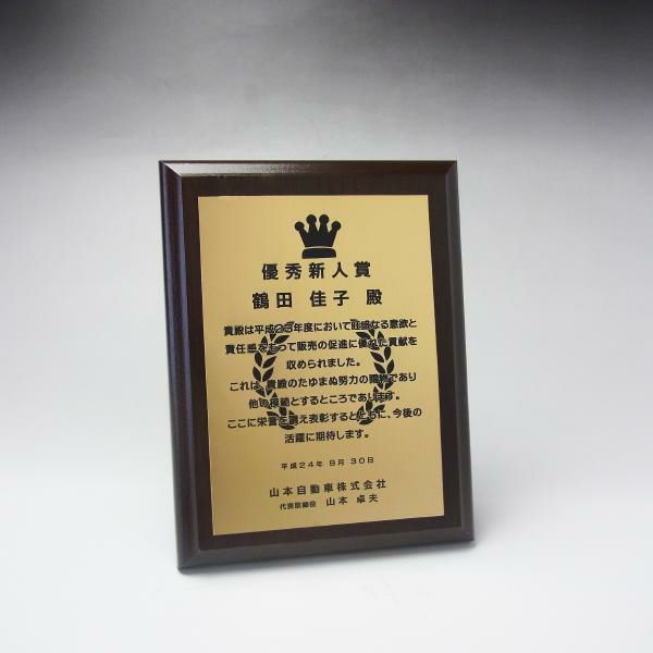 他の画像を見る 表彰状や感謝状、社内表彰や学会表彰に人気 MDF表彰楯・記念楯 ダークオーク+樹脂プレート楯 Mサイズ【オーダーメイドデザイン作成お任せください デザイン保管】 カートに入れる お気に入りに登録する オリジナルデザイン対応 デザイン確認あり 1個〜注文可能 デザイン料無料 当店特別価格 ¥ 7,639 税込 5.00 (1)