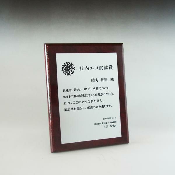 他の画像を見る 社内表彰や認定証・学会表彰に人気 MDF表彰楯・記念楯 レッドマーブル+銅黒樹脂プレート楯 Lサイズ【オーダーメイドデザイン作成お任せください デザイン保管】 カートに入れる お気に入りに登録する オリジナルデザイン対応 デザイン確認あり 1個〜注文可能 デザイン料無料 当店特別価格 ¥ 8,148 税込 (0)