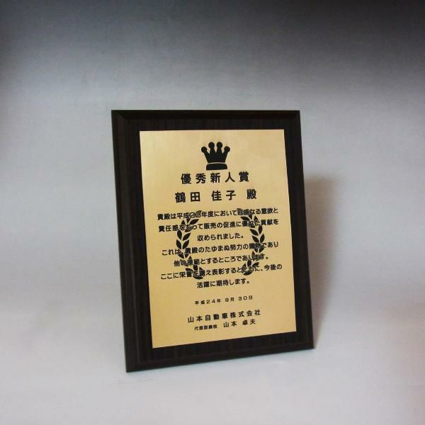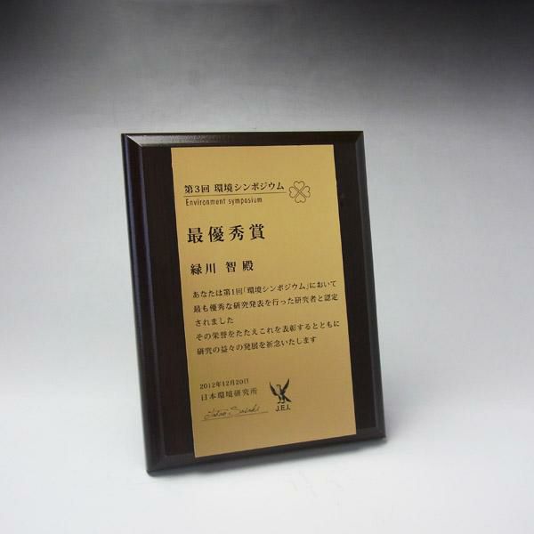 他の画像を見る 金色の樹脂製プレートにデザイン彫刻可能。デザイン料無料 MDF表彰楯・記念楯 ダークオーク+金黒樹脂プレート楯 Mサイズ【オーダーメイドデザイン作成お任せください デザイン保管】 カートに入れる お気に入りに登録する オリジナルデザイン対応 デザイン確認あり 1個〜注文可能 デザイン料無料 当店特別価格 ¥ 7,639 税込 (0)