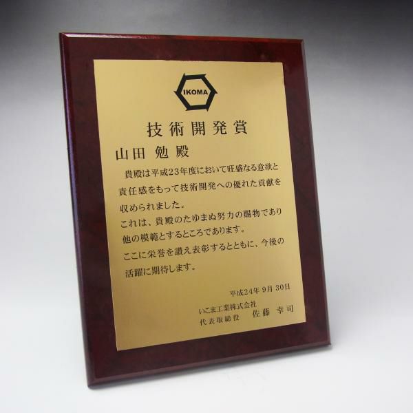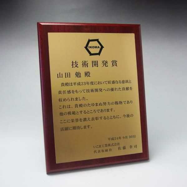 表彰状や感謝状、社内表彰や学会表彰に人気 MDF表彰楯・記念楯 飾枠付新カリン+樹脂プレート Mサイズ【オーダーメイドデザイン作成お任せください デザイン保管】