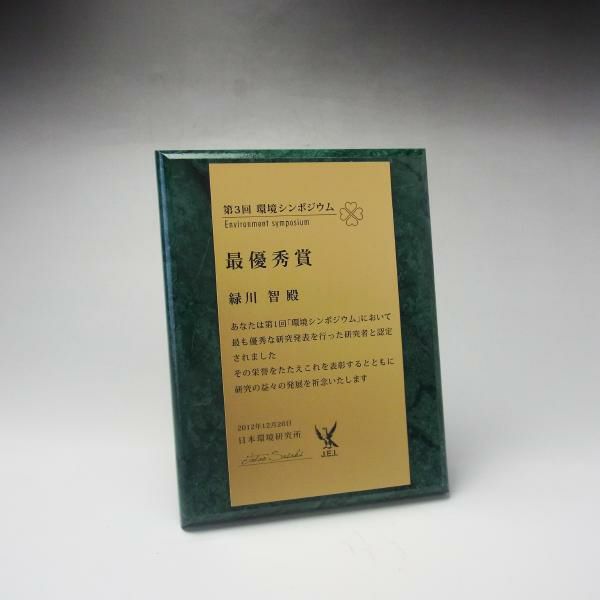 表彰状や感謝状、社内表彰や学会表彰に人気 MDF表彰楯・記念楯 飾枠付グリーンマーブル+樹脂プレート Mサイズ【オーダーメイドデザイン作成お任せください デザイン保管】