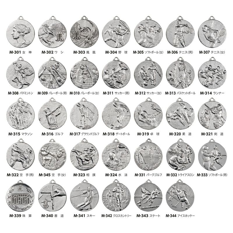 一般的な首掛けメダルタイプの他、ナスカン付きのキーホルダータイプ、ボールチェーンタイプなど様々なバリエーションから仕様をお選びいただけます。表彰で使用する場合は首掛けリボンタイプ、イベント出場の記念品として贈呈する場合はキーホルダータイプなど使い分けることができます。キーホルダータイプは記念メダルとしてバッグなどにも取り付け可能なので、教室の記念品としてなど、お子様にも人気です。