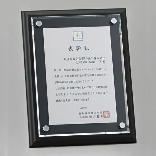 永年勤続表彰や取引様への感謝楯など法人利用として、コンテスト・コンクールなど文化イベントの表彰記念品として幅広くご利用いただいております。一般的なノセコ(ワシなどの金属のモチーフ)が乗った表彰楯はもちろん、板の全面にレーザー彫刻ができるオーダーメイド表彰楯やミラー素材の楯、アクリルプレートとの組み合わせでより高級感を演出できる楯など、豊富な品揃えの中からお選びいただけます。1962年に創業以来、自社工場での名入れ加工の実績を重ねてきた確かな技術で、丁寧に彫刻を施します。