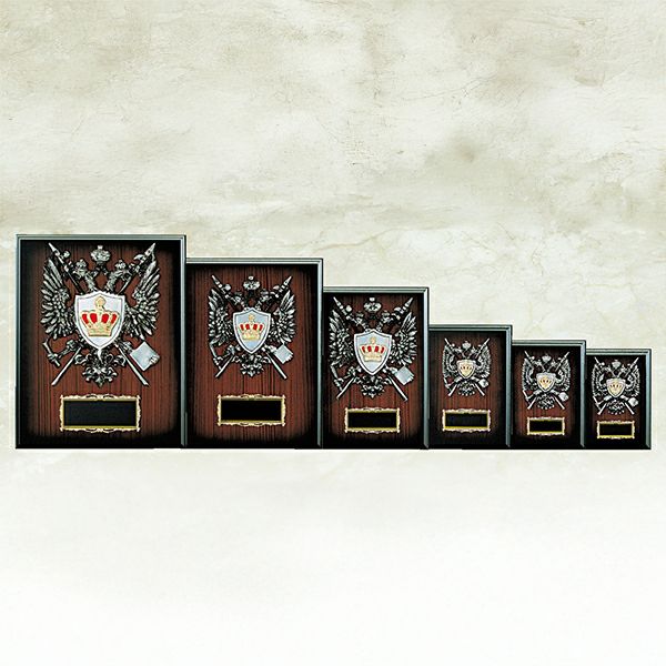 王冠やワシのノセコ(モチーフ)が印象的な一般的な表彰楯の他、競技を選べる表彰楯、鏡のようなミラー素材で気品漂う楯、オリジナルのデザインを全面に施せる楯など、約700種類の商品の中から表彰シーンに合った商品をお探しいただけます。木材の色や用途別に、探しやすく分類しております。