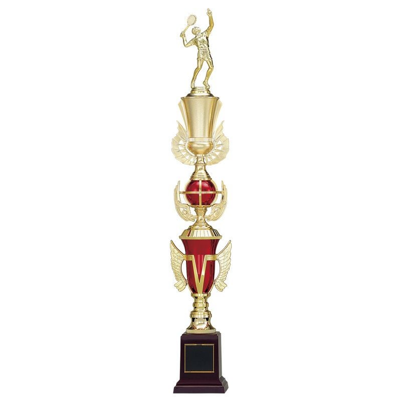 他の画像を見る 金×赤の豪華な4本柱が優勝者を讃えるにふさわしいトロフィー トロフィー TR-4361A 高さ1345mm 《#B8》 詳細を見る お気に入りに登録する デザイン確認あり 1個〜注文可能 デザイン料無料 ロゴマークを入れる場合【特注プレート】はこちら 彫刻レイアウト・文字書体見本はこちら 有料人形(84)の一覧はこちら 当店特別価格 ¥ 93,500 税込 (0)