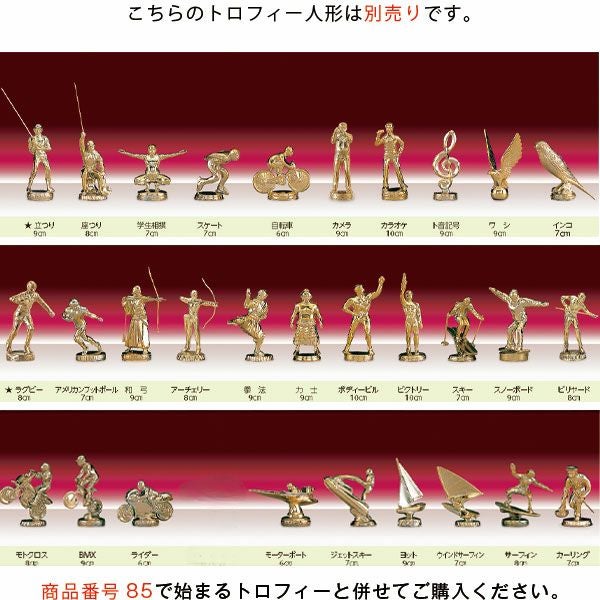 他の画像を見る 小中学生~社会人まで幅広い世代に。選手権大会やコンテスト用トロフィーにおすすめ トロフィー TR-4305A 高さ905mm 《#B15》プレート名入れ彫刻無料 短納期 詳細を見る お気に入りに登録する デザイン確認あり 1個〜注文可能 デザイン料無料 ロゴマークを入れる場合【特注プレート】はこちら 彫刻レイアウト・文字書体見本はこちら 当店特別価格 ¥ 19,800 税込 (0)