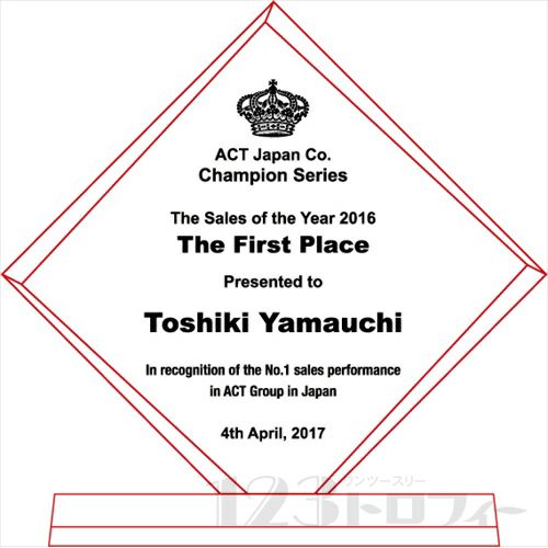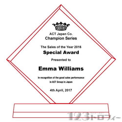 他の画像を見る ジェム(宝石)をイメージした美しい輝きのアクリル製トロフィー アクリルトロフィー ジェム クリア 89GEM-Clear 詳細を見る お気に入りに登録する オリジナルデザイン対応 デザイン確認あり 1個〜注文可能 デザイン料無料 当店特別価格 ¥ 12,100 〜 ¥ 14,300 税込 当店特別価格 ¥ 税込 5.00 (1)