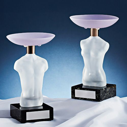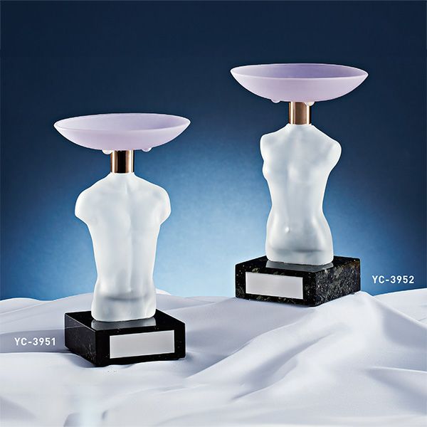 上部は光学ガラスで土台が大理石のもの、光学ガラスのトロフィーに真鍮製のマークがついているものなど、異素材を組み合わせた商品ラインナップも豊富です。全体が同じ素材のトロフィーよりも印象的で飾っていても目を惹きます。また、一部にレインボーやレッド、ブルーやグリーンなどのカラーを取り入れた商品も人気です。