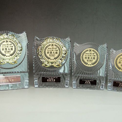 他の画像を見る クリア樹脂の透明感が人気の表彰楯 表彰楯(表彰盾) 王冠 AT-4478ABCD 高さ173mm~124mm 短納期 詳細を見る お気に入りに登録する 1個〜注文可能 デザイン確認はメール添付(修正不可) デザイン料無料 ロゴマークを入れる場合【特注プレート】はこちら 彫刻レイアウト・文字書体見本はこちら 当店特別価格 ¥ 2,310 〜 ¥ 3,630 税込 当店特別価格 ¥ 税込 (0)
