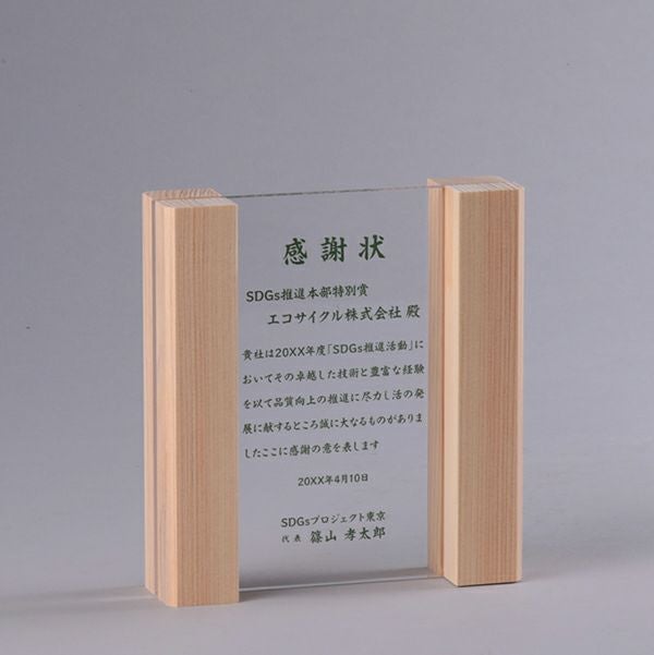 他の画像を見る ※表示の納期は目安です。受注生産のため納期は受注後にご連絡します※ ヒノキ間伐材エコアクリル楯 L73-01ABC 高さ180mm~140mm デザイン無料 詳細を見る お気に入りに登録する オリジナルデザイン対応 デザイン確認あり 1個〜注文可能 デザイン料無料 当店特別価格 ¥ 13,200 〜 ¥ 17,600 税込 当店特別価格 ¥ 税込 (0)