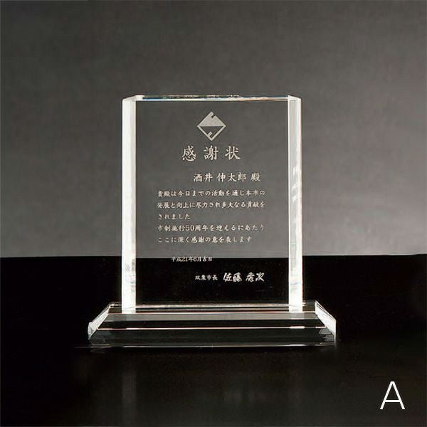他の画像を見る 選べる3種類のメダルモチーフ、重厚感のあるクリスタルトロフィー クリスタルトロフィー CNV307《SN-32》 詳細を見る お気に入りに登録する 1個〜注文可能 デザイン確認はメール添付(修正不可) デザイン料無料 ロゴマークを入れる場合【特注プレート】はこちら 彫刻レイアウト・文字書体見本はこちら 当店特別価格 ¥ 19,800 〜 ¥ 23,100 税込 当店特別価格 ¥ 税込 (0)