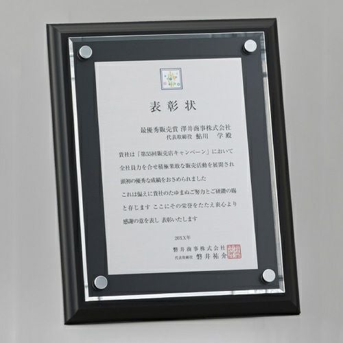 他の画像を見る アクリルと木材のコラボがおしゃれな記念楯 カラー対応表彰楯 黒檀+アクリル Lサイズ【デザイン確定後3~4営業日出荷可能・オーダーメイドデザイン作成無料・デザイン保管で簡単リピート注文】 詳細を見る お気に入りに登録する オリジナルデザイン対応 デザイン確認あり 1個〜注文可能 デザイン料無料 カラー対応 当店特別価格 ¥ 16,500 税込 (0)