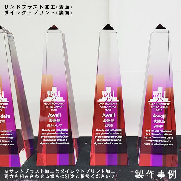 他の画像を見る 京都本金箔使用のカラー対応クリスタルトロフィー クリスタルトロフィー 85CK-344ABC 京都本金箔フルカラーUVプリント 詳細を見る お気に入りに登録する オリジナルデザイン対応 デザイン確認あり 1個〜注文可能 デザイン料無料 カラー対応 当店特別価格 ¥ 25,300 〜 ¥ 30,800 税込 当店特別価格 ¥ 税込 (0)