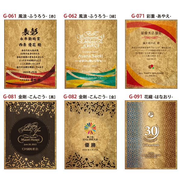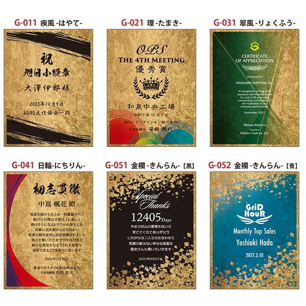 他の画像を見る ※表示の納期は目安です。受注生産のため納期は受注後にご連絡します※ シルバープレート NW-4799ABCD 高さ300mm~150mm 【デザイン無料】 詳細を見る お気に入りに登録する オリジナルデザイン対応 デザイン確認あり カラー対応 送料無料 当店特別価格 ¥ 61,600 〜 ¥ 143,000 税込 当店特別価格 ¥ 税込 (0)