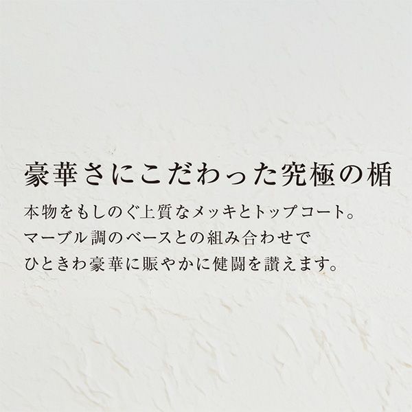 他の画像を見る 天然石の台座がおしゃれで高級感を演出 フリーセレクショントロフィー BRZ-4649B 高さ169mm 《SO-110》 詳細を見る お気に入りに登録する デザイン確認あり 1個〜注文可能 デザイン料無料 ロゴマークを入れる場合【特注プレート】はこちら 彫刻レイアウト・文字書体見本はこちら 当店特別価格 ¥ 7,150 税込 (0)