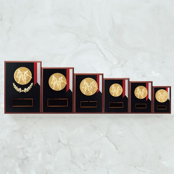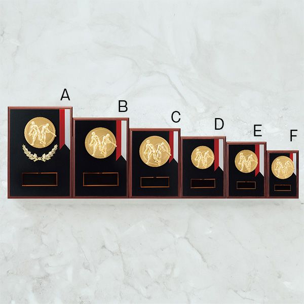 野球・ソフトボール専用表彰楯。ピッチャーとバッターの図柄のレリーフが印象的な表彰楯(記念盾)です。紅白リボンのようなデザインがおしゃれで、野球大会の入賞表彰・個人賞表彰用をはじめ野球部の卒団記念品としてもご利用いただいております。A~Fの6サイズ展開なので、世代別やクラス別などサイズ違いの表彰楯をまとめてご購入いただけて便利です。ご希望納期がある方はご注文の際にお知らせください。