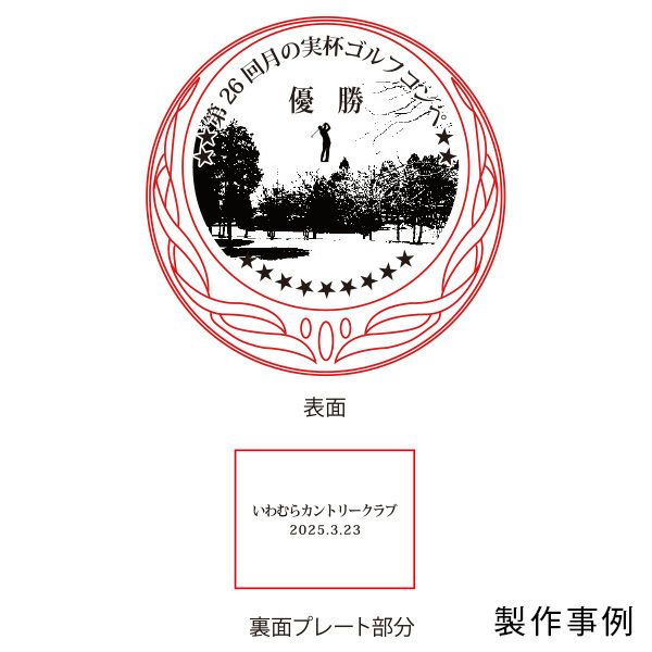 他の画像を見る ブリリアントメダル MY-8246 直径40mm《27×30》スタンド式プラケース付き 詳細を見る お気に入りに登録する デザイン確認はメール添付(修正不可) ロゴマークを入れる場合【特注プレート】はこちら 彫刻レイアウト・文字書体見本はこちら 当店特別価格 ¥ 2,420 税込 (0)