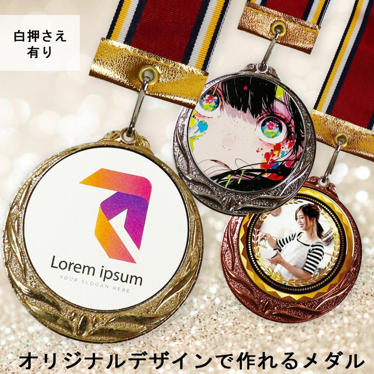 他の画像を見る 【オリジナルデザインができるメダル】ラグジュアリーメダル MY-8715 直径75mm《SO-108》デザイン料無料 詳細を見る お気に入りに登録する デザイン確認あり 1個〜注文可能 デザイン料無料 当店特別価格 ¥ 19,800 税込 (0)